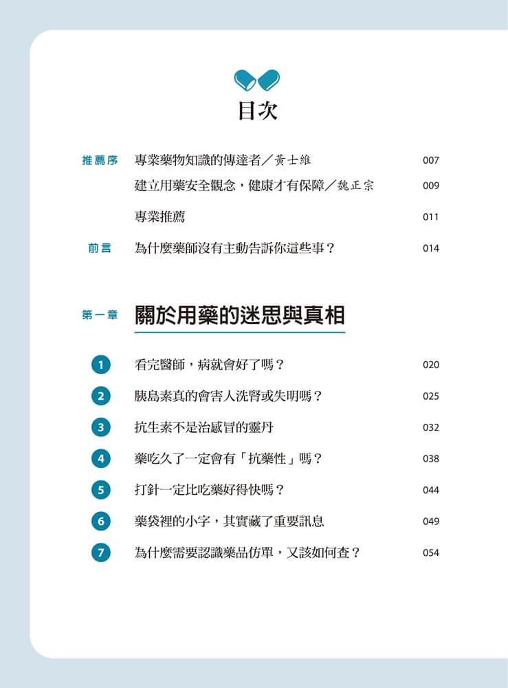如今,在資訊爆炸、醫療迷思滿天飛的時代,正確的用藥知識從來沒有像現在這麼重要。正憲透過這本書,把藥師平時來不及說、一般民眾往往忽略的細節,完整呈現出來。這不只是一本關於藥物的書, 更是一本關於理解身體、信任醫療、保護自己的書。