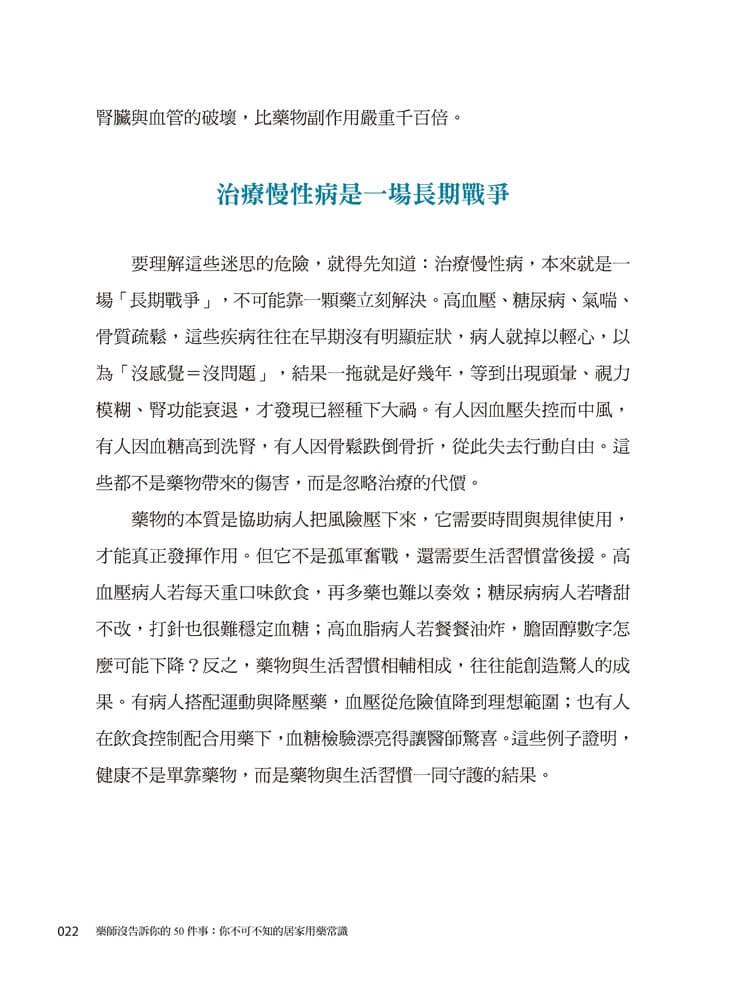 而在資訊爆炸的時代,網路上流傳的「偏方」與「小撇步」充斥其中,真假難辨。尤其現在有了AI 與各種線上諮詢工具,許多人更容易自己「Google 開藥方」。但醫學知識不同於生活常識,它需要多年專業訓練與臨床經驗的驗證。這正是藥師存在的價值,也是這本書想補上的那一塊遺漏。