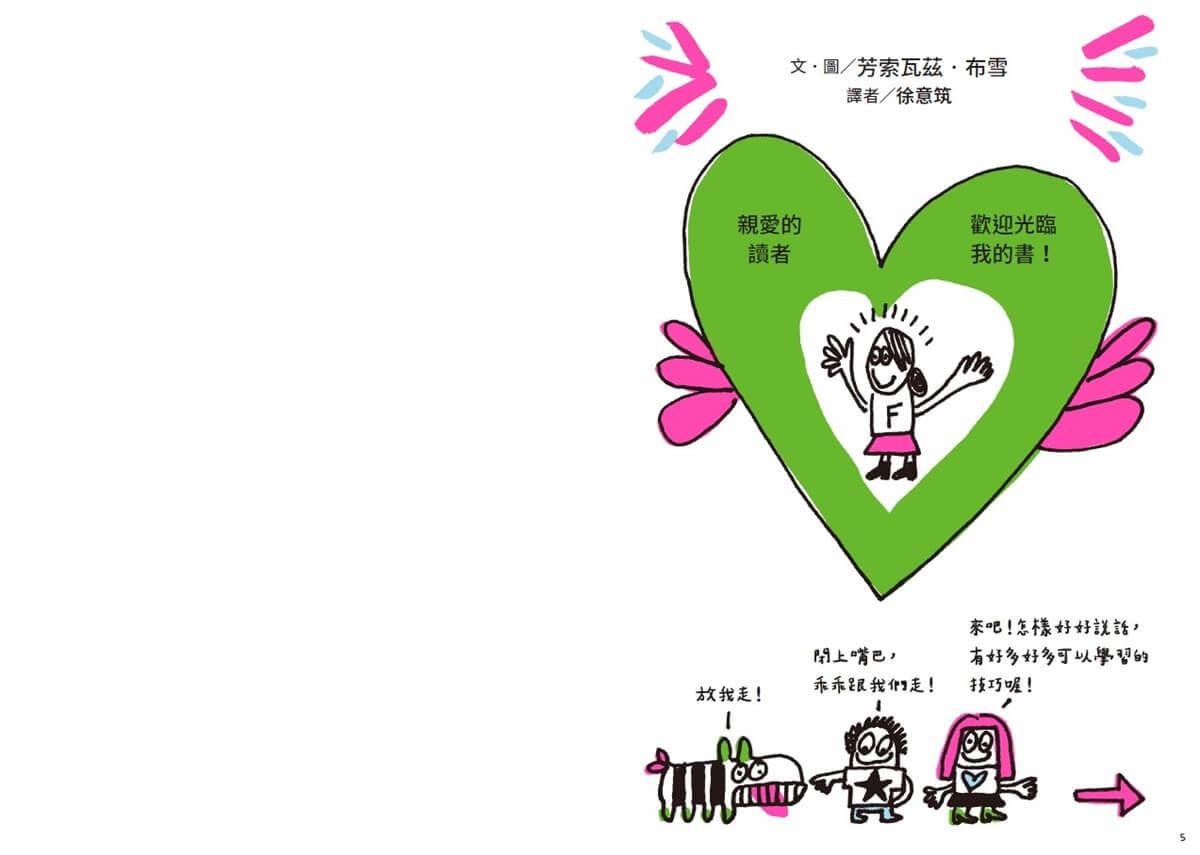 更難得的是,本書強烈的塗鴉風格、爆笑畫面,非常切中國小學童喜好的搞笑文化。書中多樣化的活動設計,也讓孩子可以在邊讀邊玩中,和書本產生更多互動,也讓閱讀經驗更容易轉化為實用的社交情緒智慧。