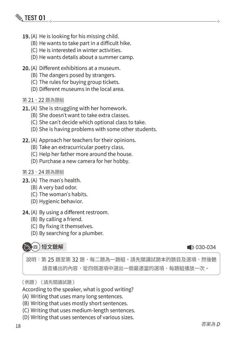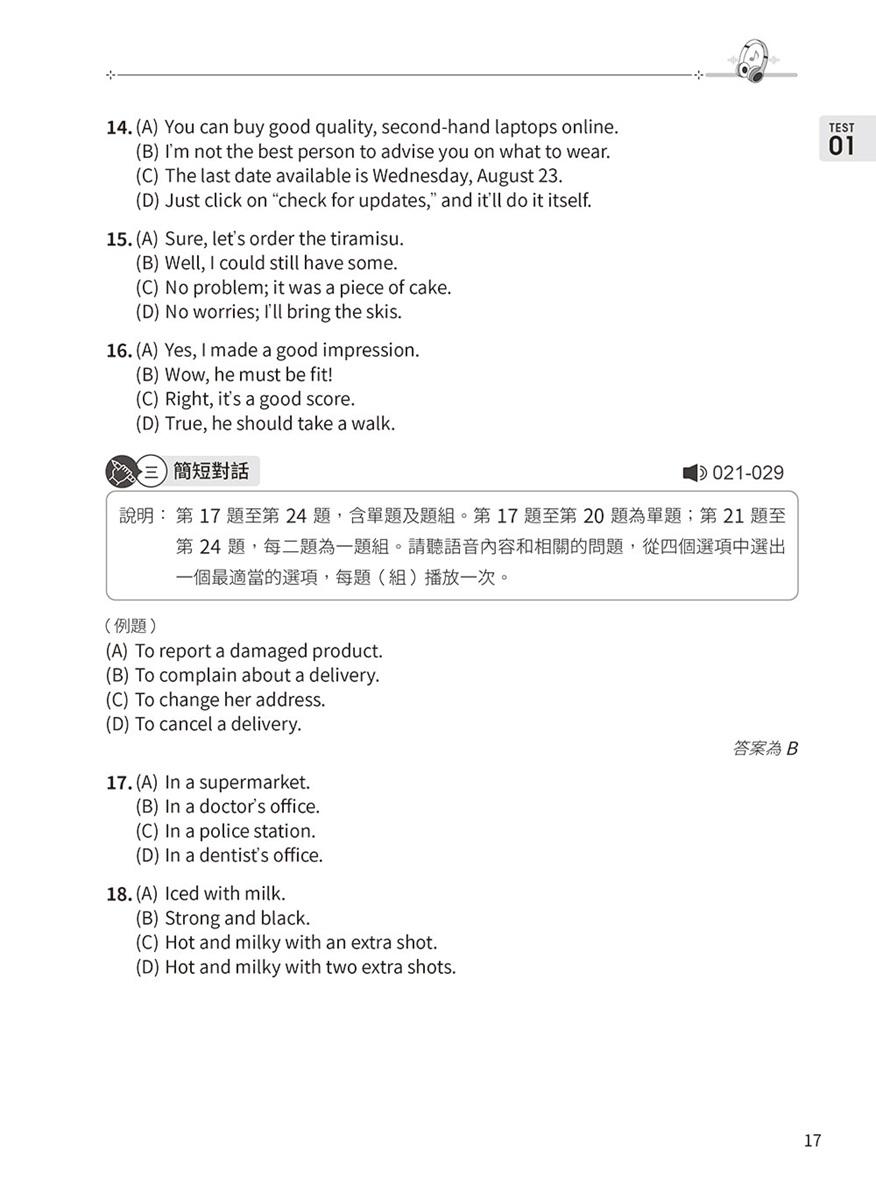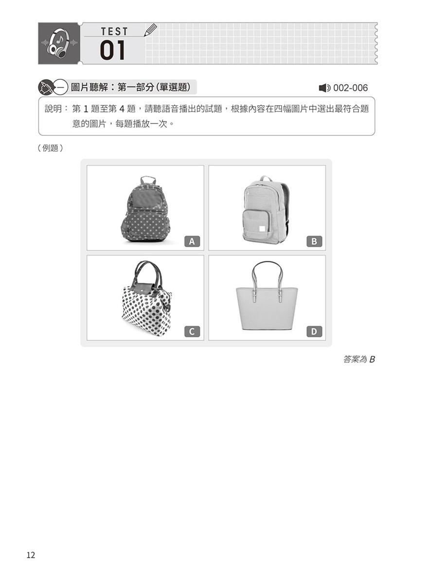 試題均由專業外籍老師錄音,發音清晰、語調自然,替你打好英聽基礎,從容應考。