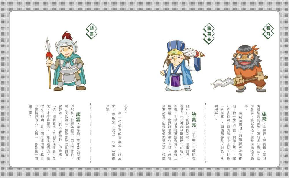 ★特色2.了解中國經典最佳入門書:改編自中國四大名著之一《三國演義》,小學生到青少年必讀經典故事。以「人物」為各書主軸,以「現代語言」述說人物故事,藉「事件」展露主角的個性特質;看三國人物如何在歷史舞台上呼風喚雨、以武力智力拚鬥,藉此激發小讀者對歷史故事的思考,發展出探討歷史真實的能力。