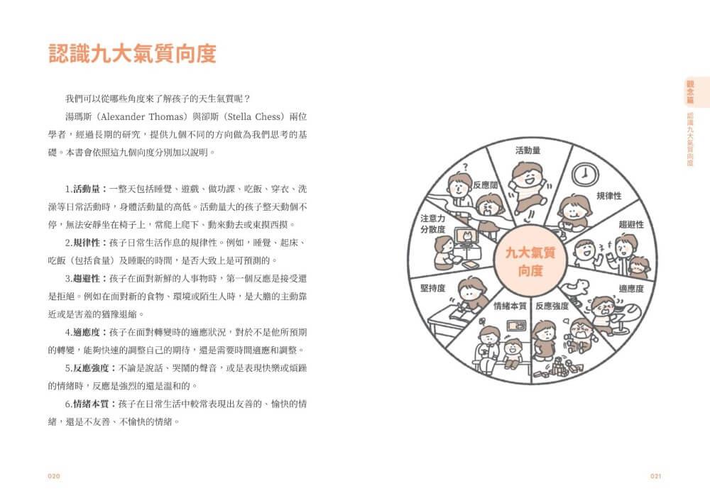孩子從出生那一刻起,就帶著一套穩定存在的「天生氣質」,有人是精力旺盛的好動小猴,有人是慢條斯理的安靜小貓,當父母能理解孩子的九種氣質,就能將教養與氣質契合,引領孩子順性成長、發揮特質優勢──