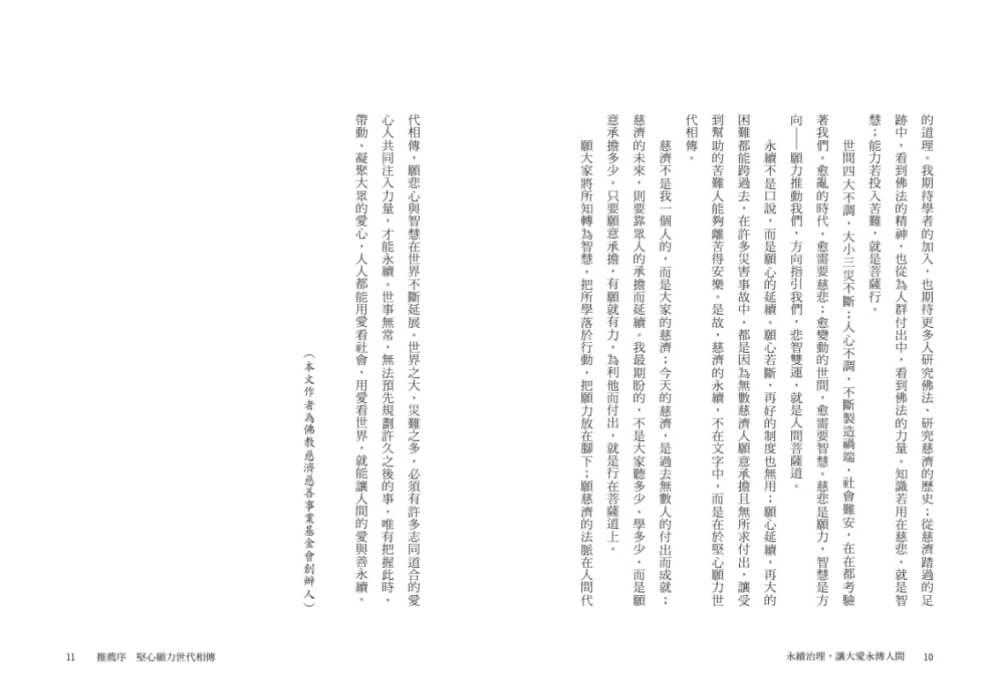 如果要讓慈濟的精神永續,繼續傳承下去,就要有一個組織治理的機制,要靠制度才能讓組織永續發展。……在此向各位讀者推薦本書,相信您定能從中獲得啟發。——施振榮,宏碁集團創辦人