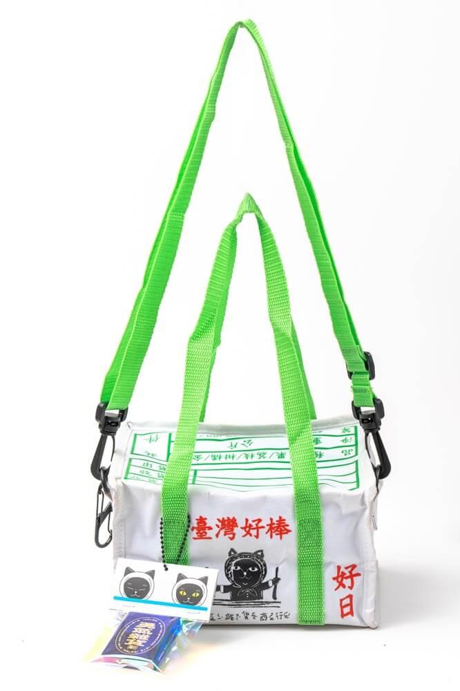 這個系列是臺灣寶島箱系列,水果箱造型的斜背包,大小很適合做孩子的便當袋,也很多人拿來裝鉛筆或是日常用,雖然不大卻能裝得下一整個長夾和礦泉水小瓶,即使白色也不需要怕髒,因為愈髒愈可愛有市場感~