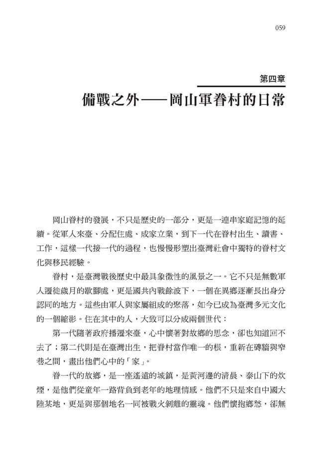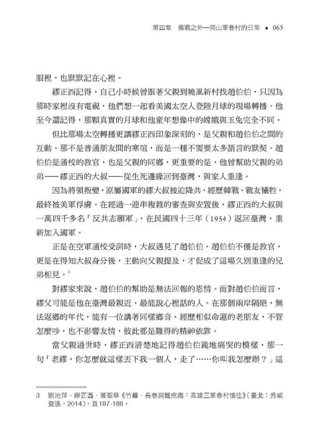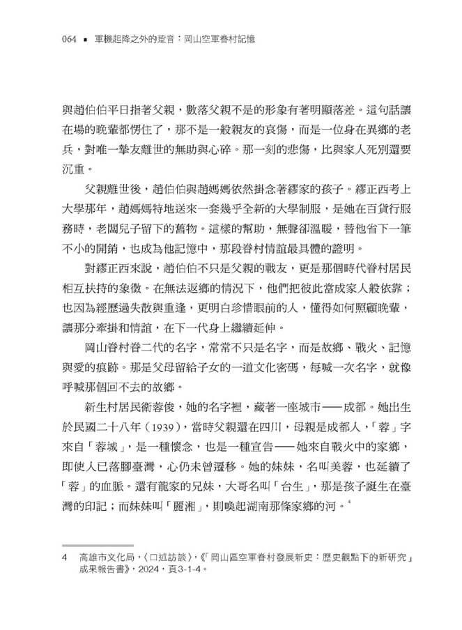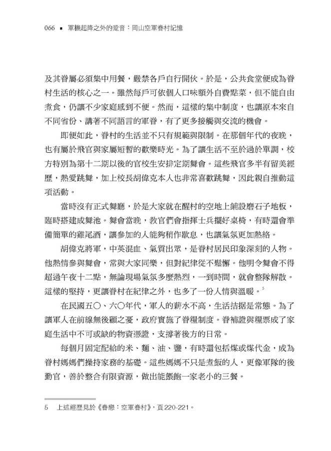 這不是單純的地方誌或冰冷的歷史考證,而是一段段鮮活人物故事的拼圖。透過他們的記憶,我們得以走進那個真實又溫暖的眷村世界:
