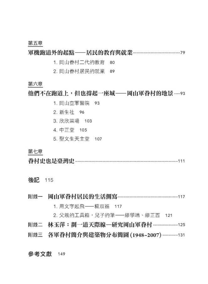 岡山不同於其他混合型眷村,它是一座由空軍及其家屬構成的「純軍眷村」。這樣的背景,讓居民之間關係更加緊密,彼此照應,也讓文化交融更加濃烈。從飲食、娛樂到教育,乃至建築與價值觀,每一個層面都反映了國族大歷史下的小民生活。
