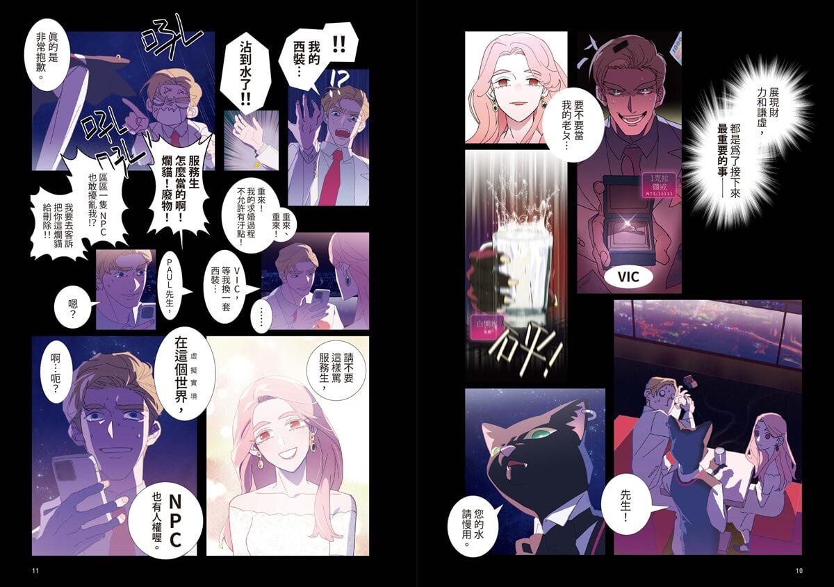 作者HOM擅長以流暢且具現代感的線條,描繪出角色間微妙的情緒張力。無論是科幻感十足的虛擬場景,還是角色間眼神交會時那份甜蜜的悸動,都在她細緻的筆下展露無遺。