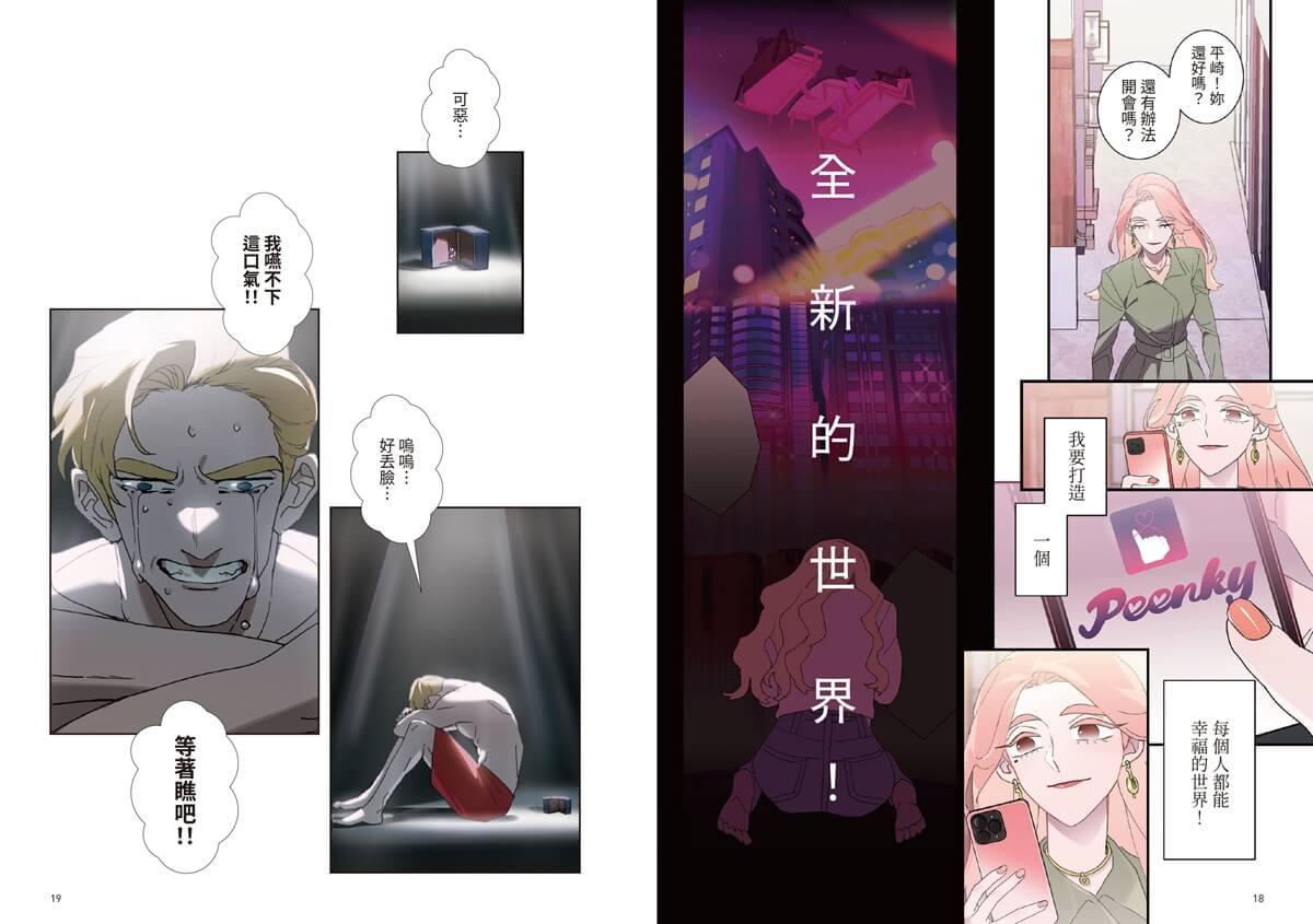 台漫界的黑鏡科幻喜劇,虛實交錯的新科技揭露人們對親密關係的渴望、矛盾、衝突、改變,在虛擬實境交友APP「PEENKY」裡,每個人都能透過課金打造自己最理想的――外貌、住宅、物質生活、理想的約會、蜜月旅行,也能結婚、生育,這樣的愛、能夠定義它為真實或虛擬嗎?用AI數據演算產生的虛擬數位小孩,又會有怎麼樣的親子關係?透過不同玩家的群像故事,探討真實與虛擬之間的界線。