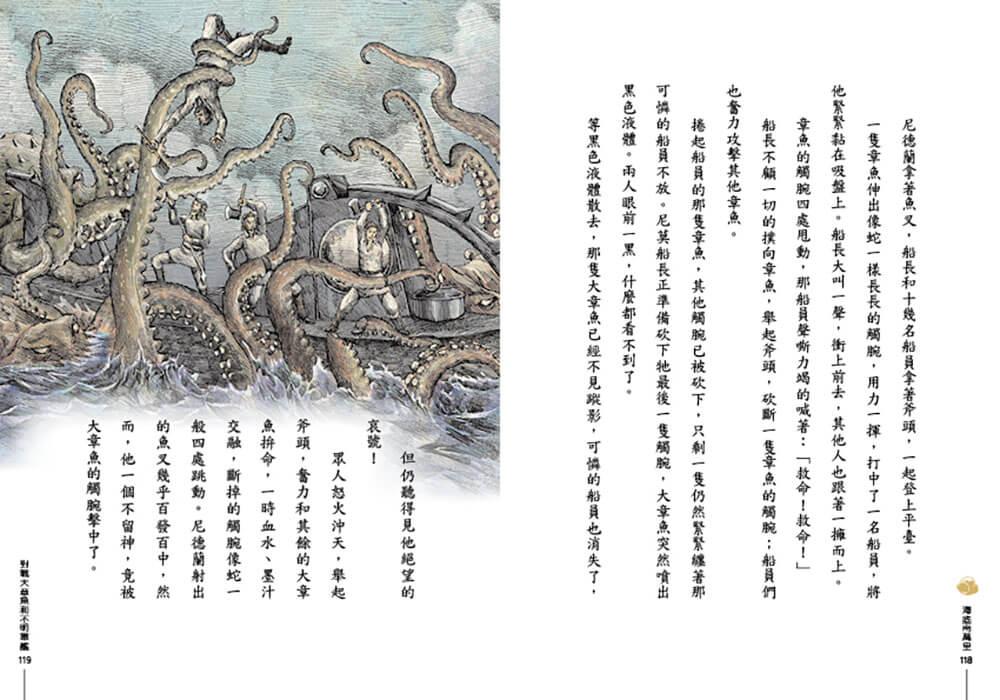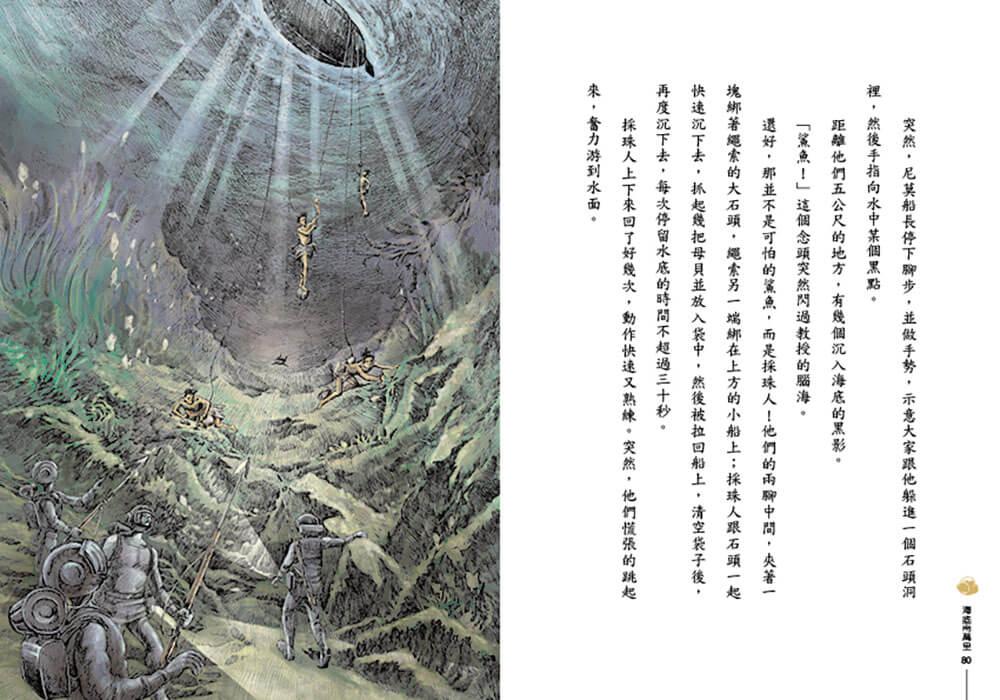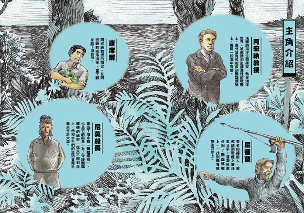 鸚鵡螺號的主人尼莫船長,帶著三人進入這巨大的潛水艇,開啟了一段跌宕起伏的海中冒險故事。