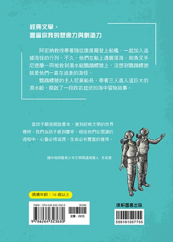 阿宏納教授帶著隨從康席爾登上船艦,一起加入追捕海怪的行列。不久,他們在船上遇襲落海,和魚叉手尼德蘭一同被救到潛水艇鸚鵡螺號上,沒想到鸚鵡螺號就是他們一直在追查的海怪。