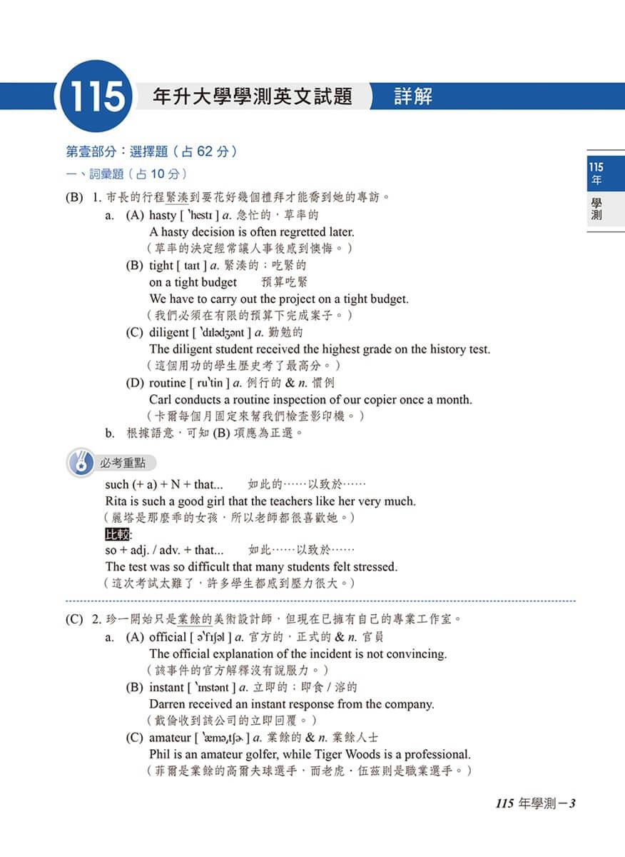 ﹝115年升大學學測 / 指考英文詳解本﹞
