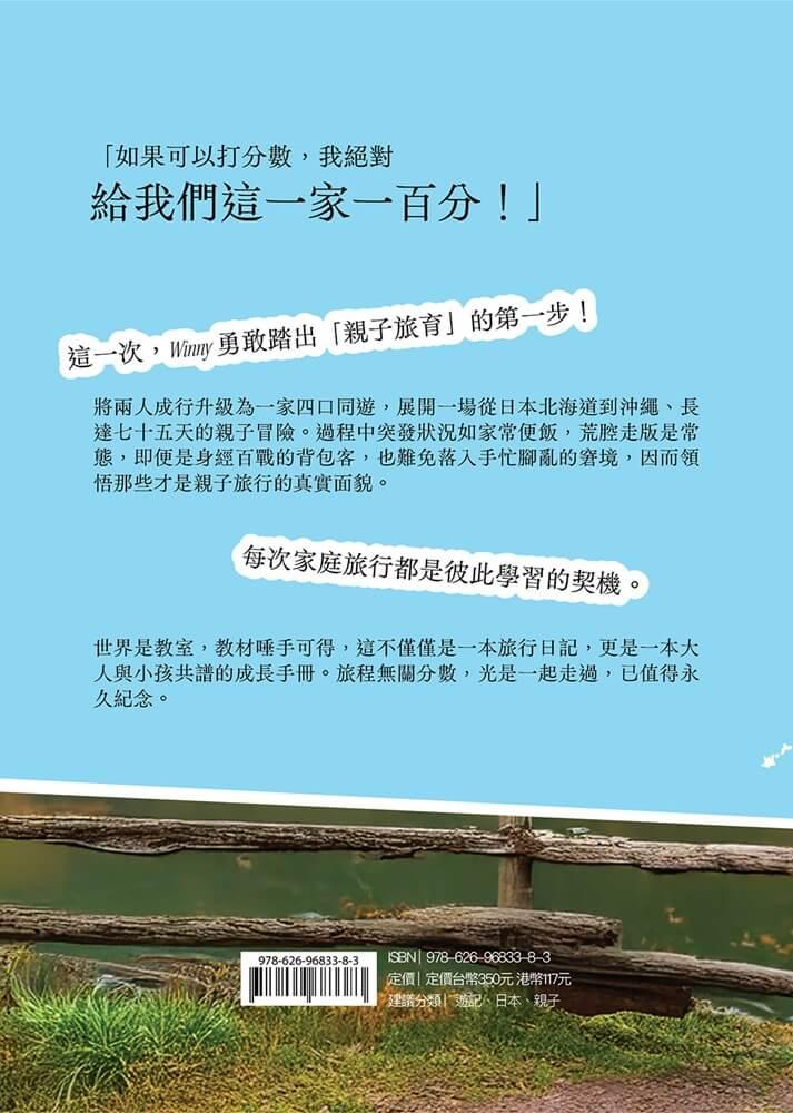 世界是教室,教材唾手可得,每次家庭旅行都是彼此學習的契機。這不僅僅是一本旅行日記,更是一本大人與小孩共譜的成長手冊。誠如作者自述:「如果可以打分數,我絕對給我們這一家一百分!」