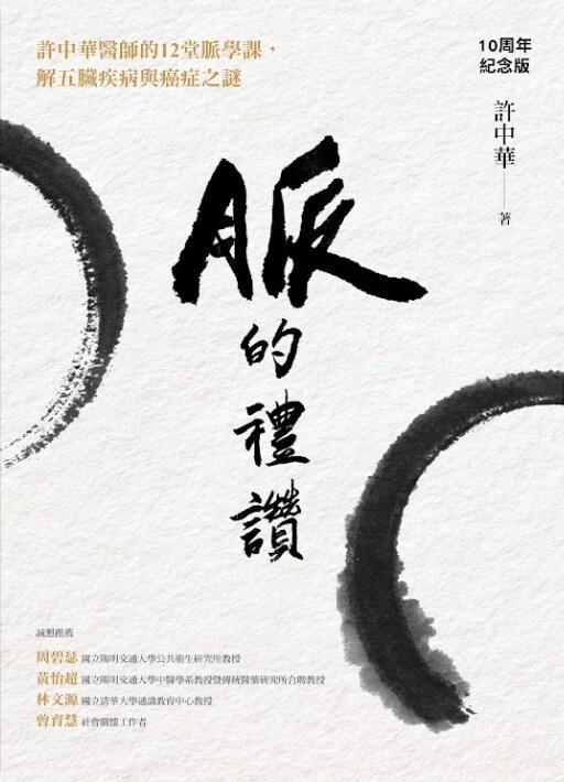 現任陽明交通大學中醫系暨傳統醫藥研究所教授許中華,出身中醫家族,祖父許丕典是在1931年正式領有中醫師執照的台灣籍中醫師。《脈的禮讚》是許醫師根據自己中西醫學背景以及30多年的臨床診治經驗,在陽明大學傳統醫藥研究所教授脈學的集結。全書共分12堂課,不只談脈學的理論與實務,也論及把脈是中醫「辨證論治」的核心,並且臨床舉例解釋脈與五臟,更有專章介紹「癌症脈證」。