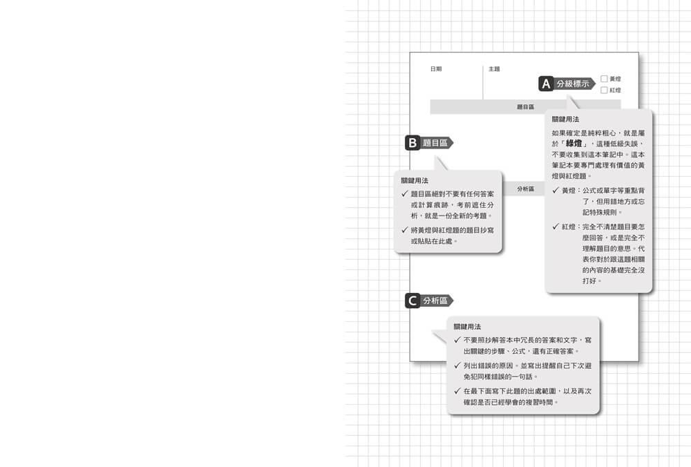 ✓ 黃燈:公式或單字等重點背了,但用錯地方或忘記特殊規則。