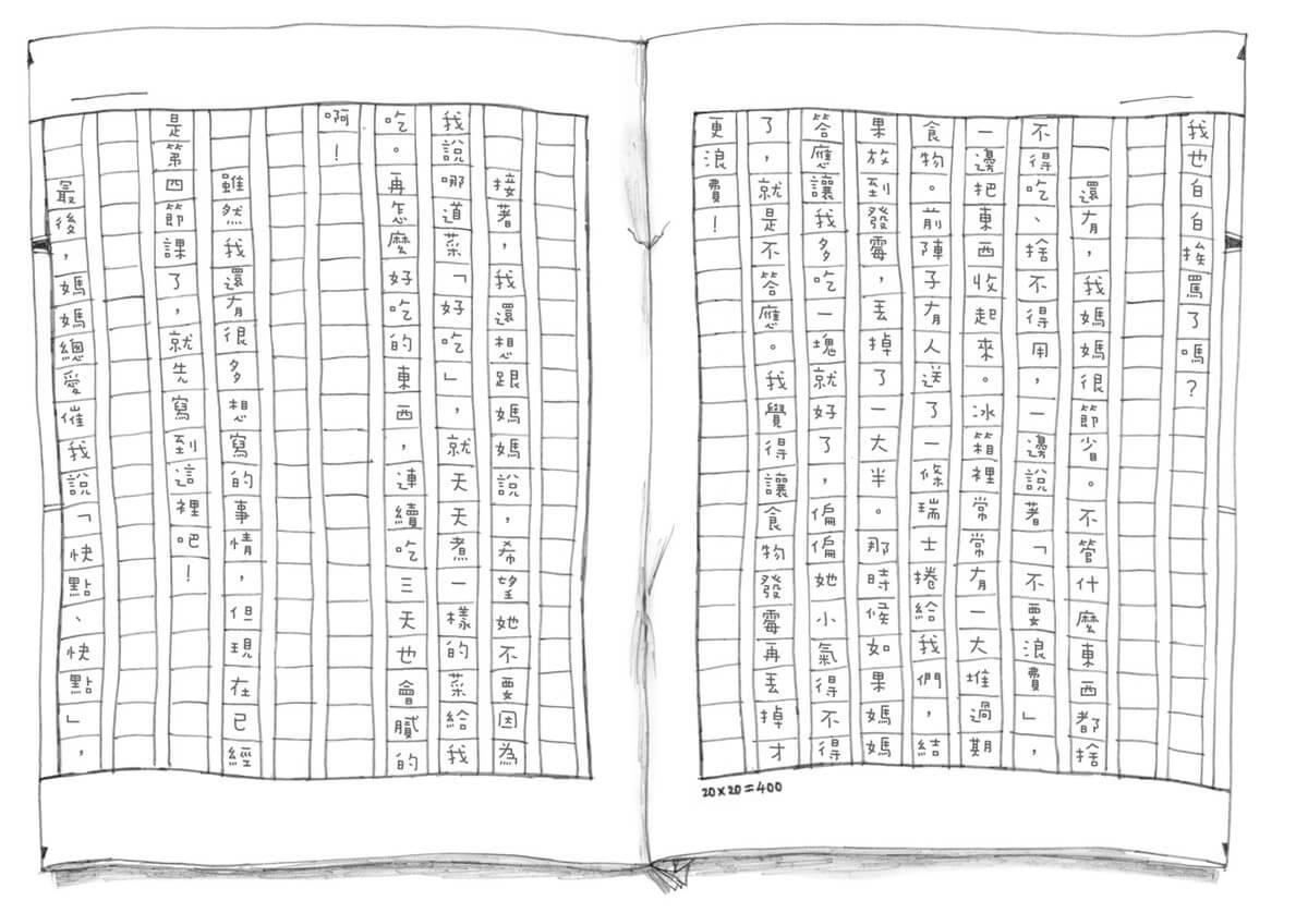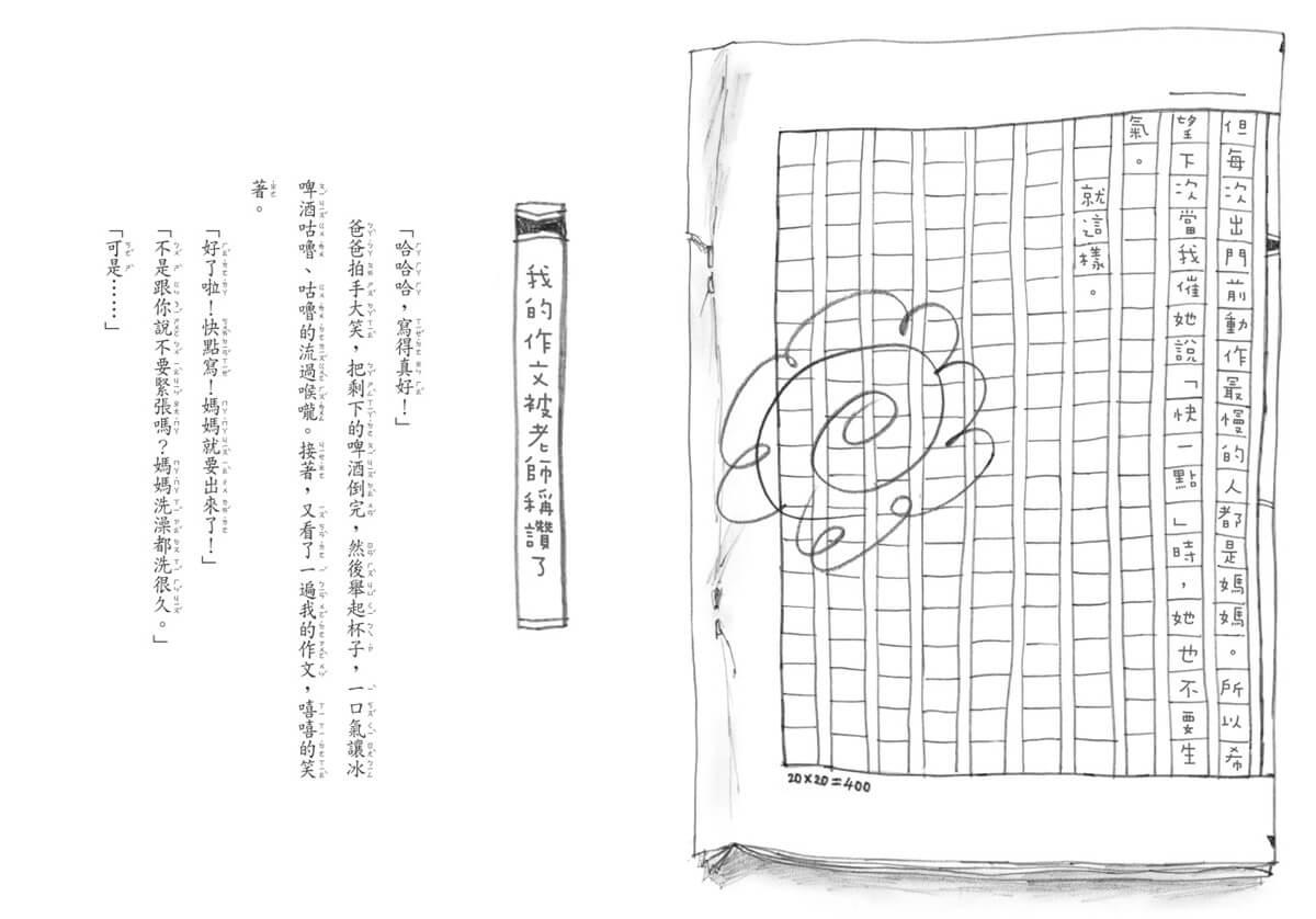 當我慢吞吞的把數學作業交到教職員辦公室時,老師對我說:「所以……」然後打開手邊的資料夾,裡面夾著那篇作文。