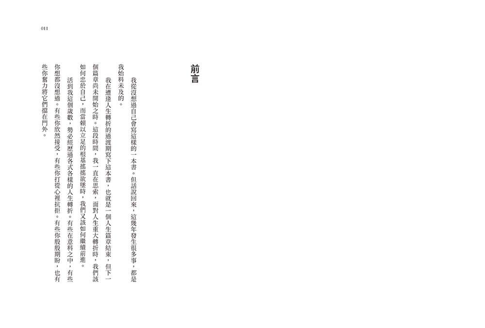 我在遭逢人生轉折的過渡期寫下這本書,也就是一個人生篇章結束,但下一個篇章尚未開始之時。這段時間,我一直在思索,面對人生重大轉折時,我們該如何忠於自己,而當賴以立足的根基搖搖欲墜時,我們又該如何繼續前進。