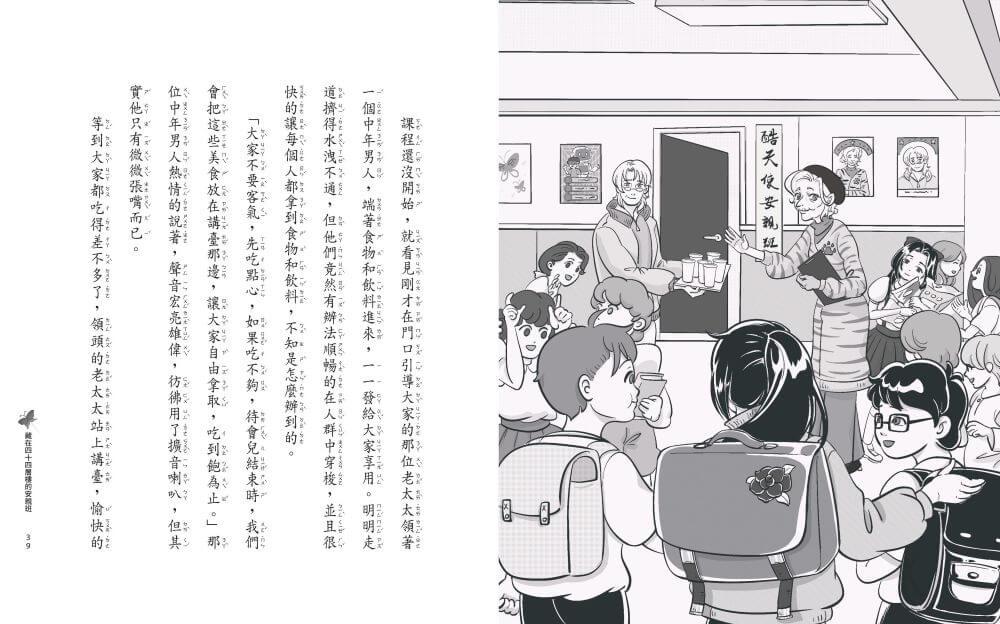 等到大家都吃得差不多了,領頭的老太太站上講臺,愉快的說:「歡迎大家來到酷天使安親班,我是班主任馬呼呼……」